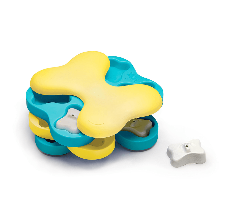 • Puzzle Feeders: Toys like the Outward Hound Nina Ottosson puzzle require your dog to figure out how to access hidden treats, which keeps their mind active. Just fill it with some kibble and let your dog do the rest of the work! You can pick this or similar puzzle games up from most pet shops or online, but do check your local pet shop first!